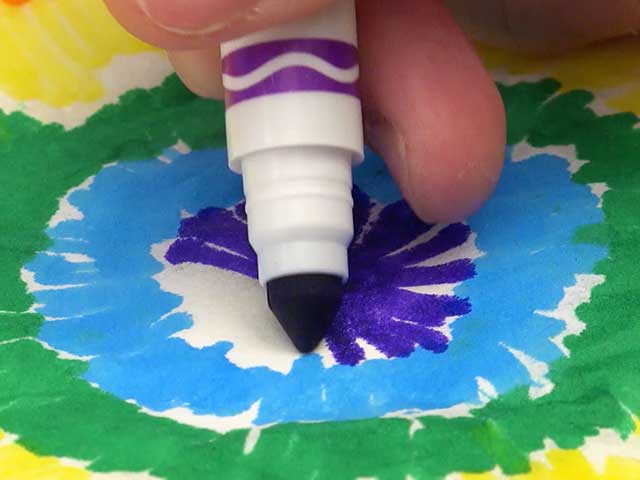 To create Rainbow Tie Dye Coffee Filter: Color on coffee filter with markers.