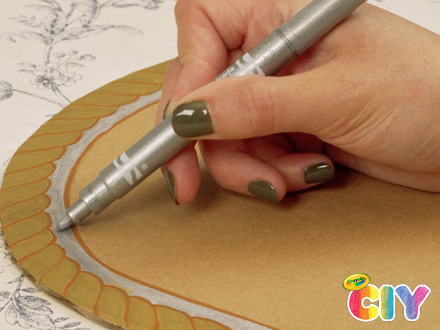 Sketch a frame border design and draw over it multiple times with Crayola Metallic Markers
