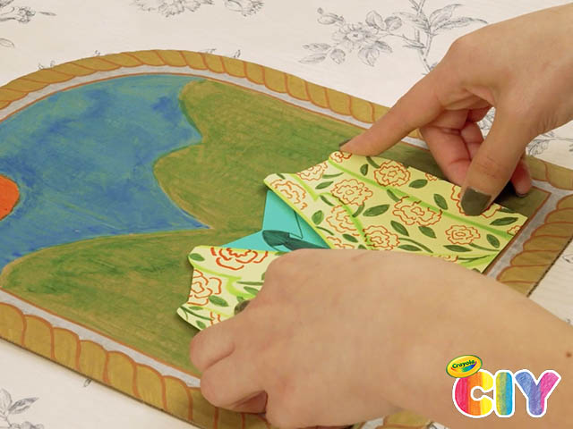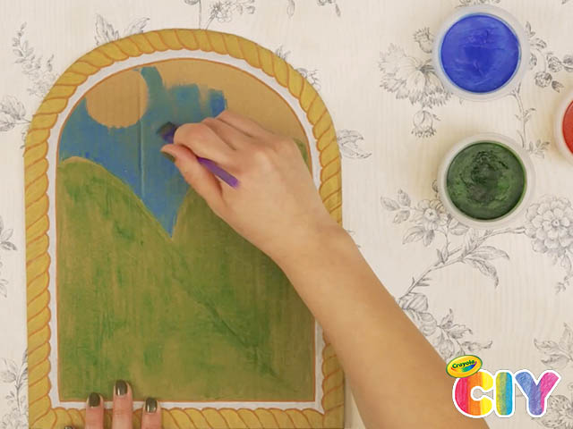 Paint a landscape or backdrop with Crayola Spill-Proof Washable Paint.