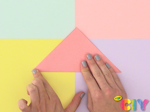 Fold in half to create triangle. Rotate so long edge is at bottom and right angle faces up.