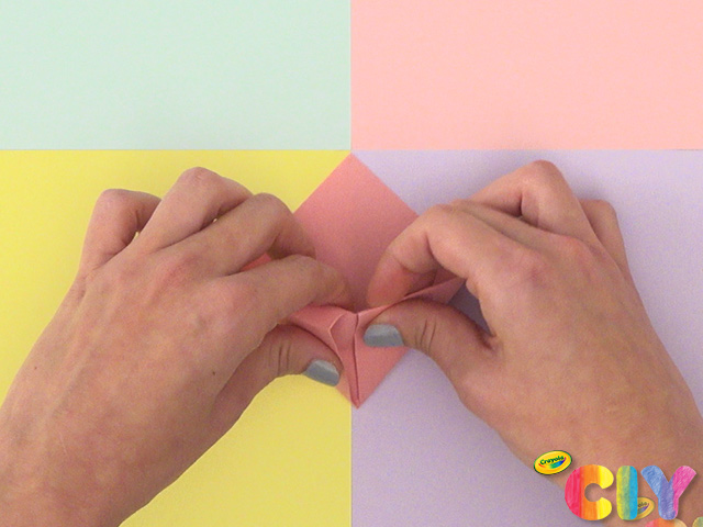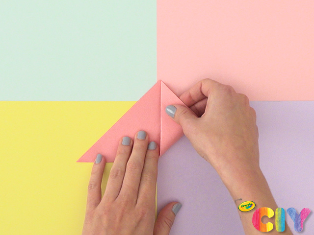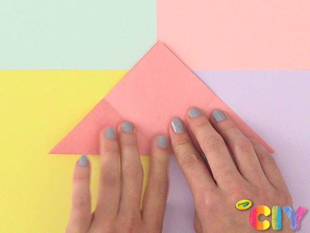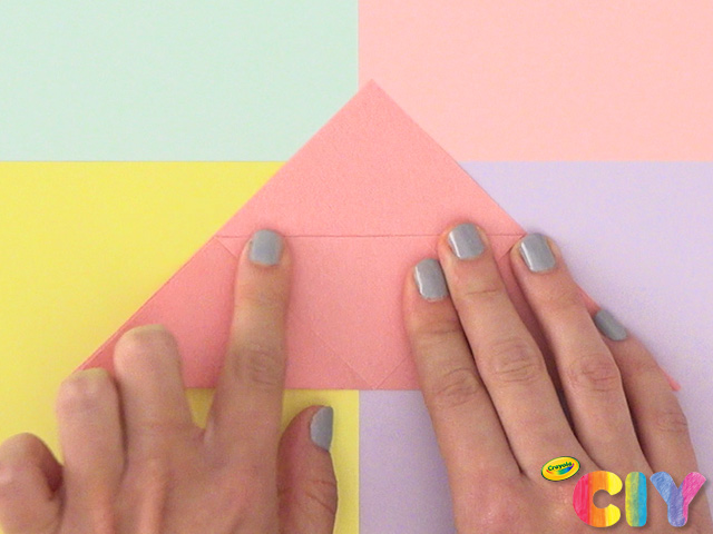 Fold down top sheet (tip of the triangle touches base) and crease.