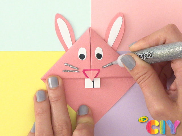 Sketch and cut out bunny animal features. Glue to bookmark.