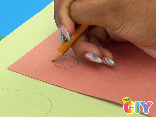 With a pencil, draw a circle onto a brown piece of Crayola Construction Paper.