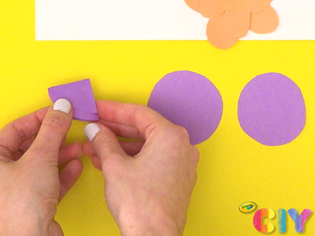 Cut slit to middle of circle. Wrap into cone shape and glue to secure. Lightly flatten cone shape to create flower.