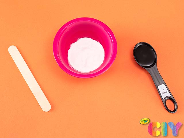 In mixing bowl, combine 2 Tbsp baking soda and 1 Tbsp water with craft stick, creating a paste.