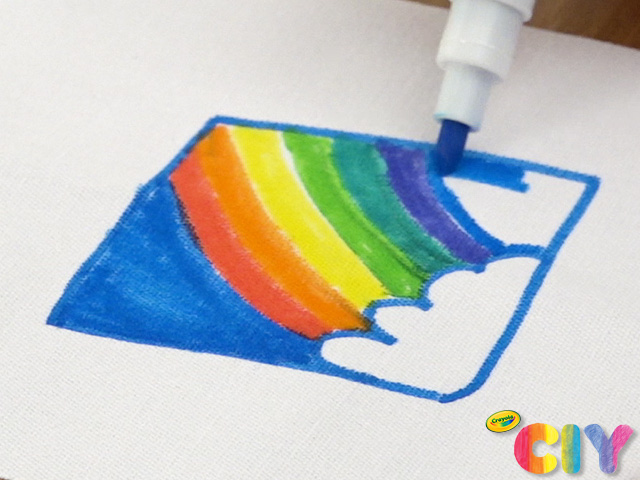 On a patch, draw and color a vibrant design using fabric markers and permanent markers.