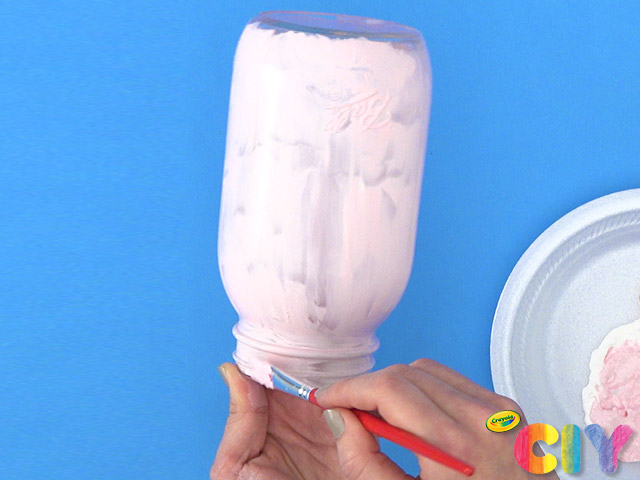 Cover mason jar with paint. Dry 1–2 hours. Add second coat. Dry 1–2 hours and add lid.