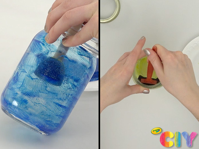 Remove and disassemble lid from mason jar. Pour paint on disposable plate and apply to inside of jar with sponge-tip brush.