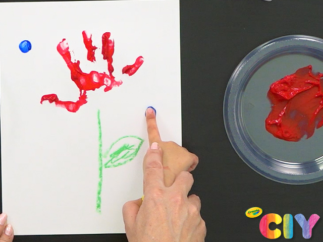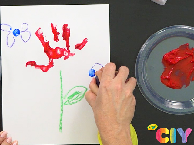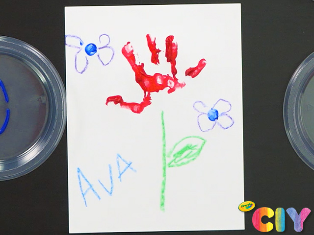 With the helping hands of your little artist, watch creativity bloom using Crayola Washable Fingerpaints! Little ones can make a Flower Handprint accented by butterfly fingerprints.