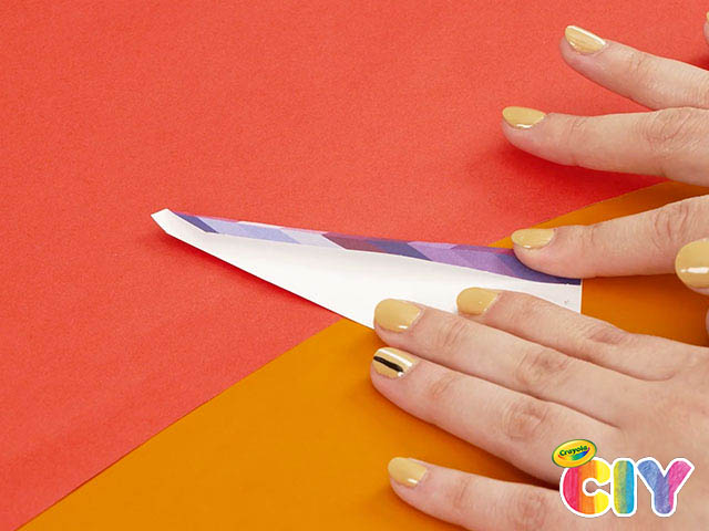 Cut out four right-angled triangles, with a tab on the back ends, from Crayola Bright Pop! Cardstock.