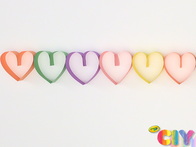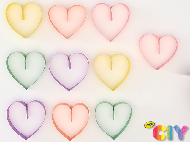 Glue sides of hearts together to form a straight line. Dry 15–30 min.