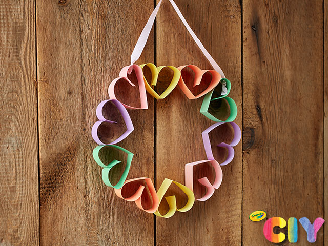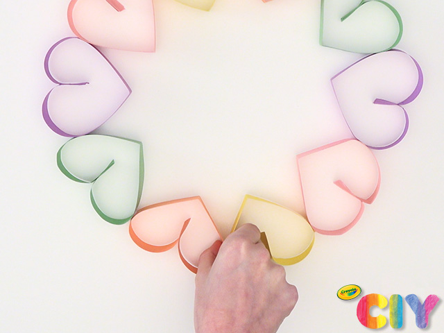 Lightly bring 2 outer hearts together to form circle, then glue. Dry 1–2 hours.