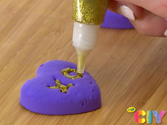 Accent the messages with glitter glue. Let dry 3–4 hours.