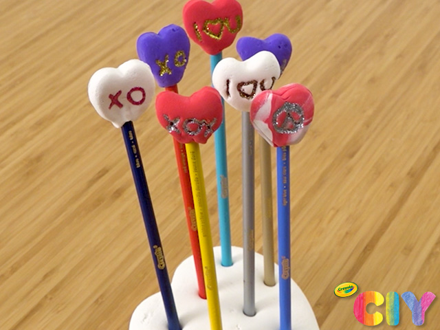 Make a Valentine’s Day craft with heart! Customize writing tools with Heart Pencil Toppers using Model Magic.