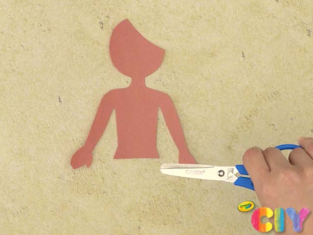 Flip cardstock used to create bathing suit. Sketch and cut out eyes.