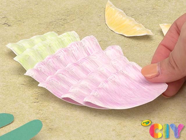 Overlap and glue paper plate pieces together for mermaid tail. Glue tail to mermaid.