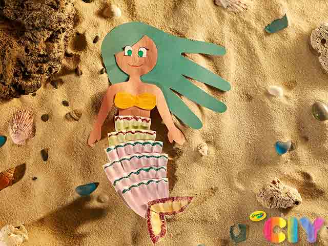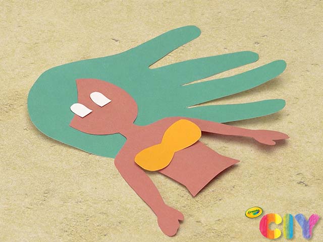 Trace hand on piece of cardstock. Cut out to create mermaid hair.