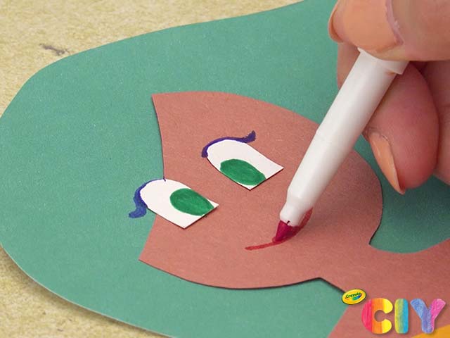 Glue bathing suit and eyes to mermaid. Let all glue steps dry 1–2 hours.