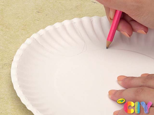 Sketch half circles of various sizes on scalloped edge of paper plate.