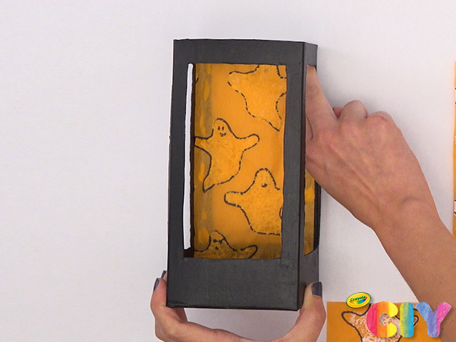 Glue tissue paper to inside of carton, paint facing out.