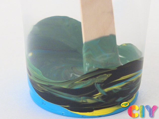 • Experiment with mixing different paint colors. To create a shadow effect, separate the same base color into 2 disposable cups. Mix a small amount of white paint into one of the cups to create the letter color. Mix a small amount of black paint into the other cup to create the shadow color.