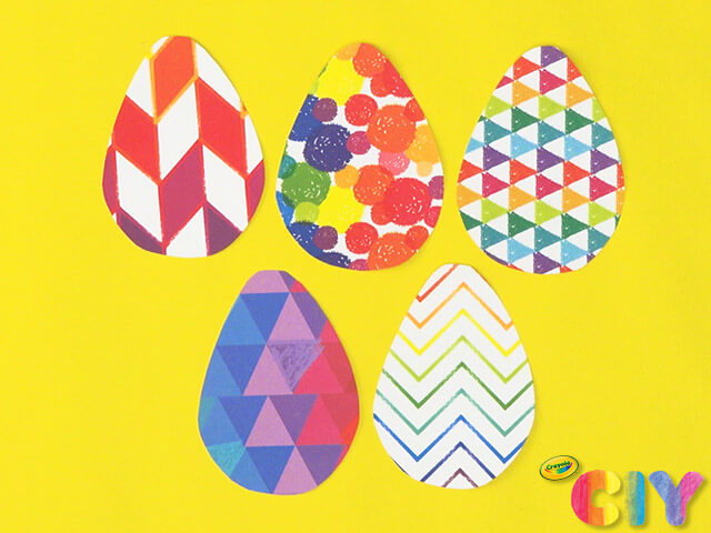 • To give your eggs Crayola flair, draw the Serpentine Design from our Crayola Crayons onto the construction paper eggs.