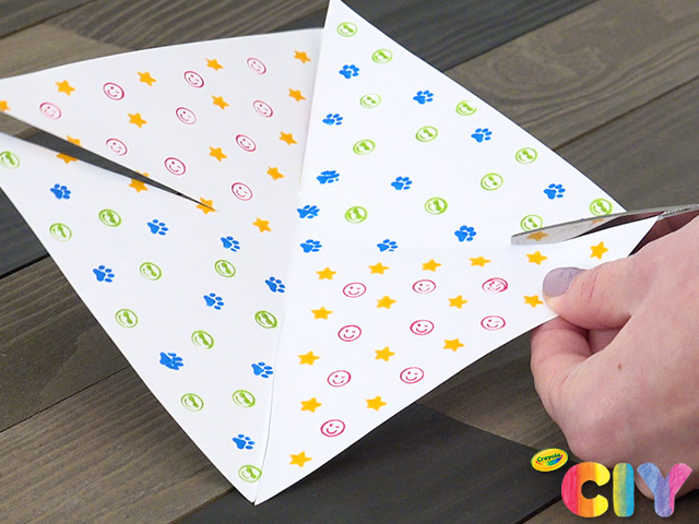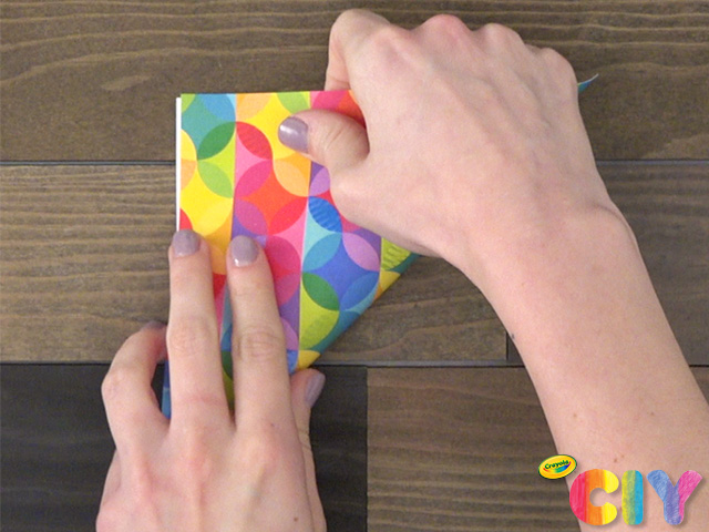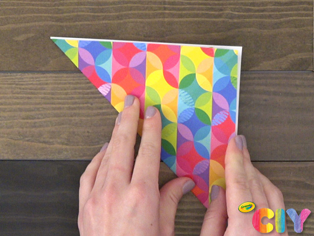 With the stamped side facing up, fold the bottom right corner to the top left corner, creating a triangle. Unfold.
