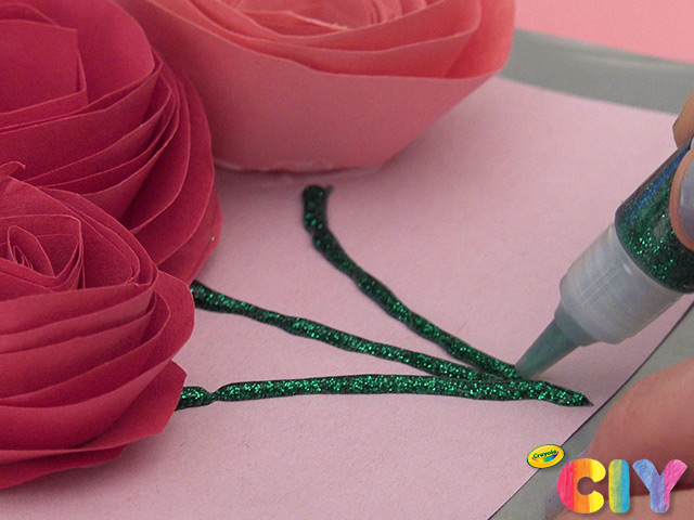 Add glitter glue flower stems.