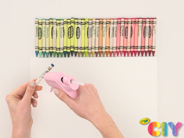 With an adult’s help, aim hair dryer downward at crayons.