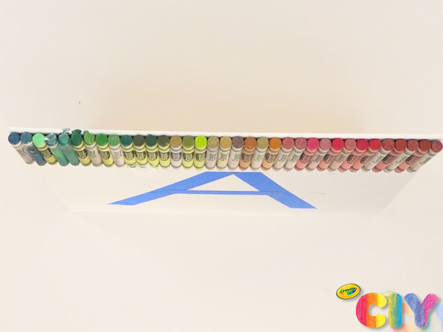 Line up crayons of your choice to span the length of the canvas.
