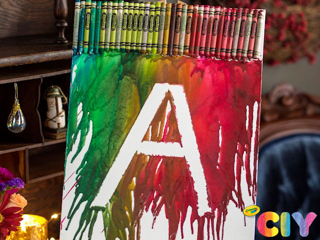 Create crayon melted art with this personalized canvas craft. Put your first initial (or your recipient’s!) on this colorful DIY melted crayon project.
