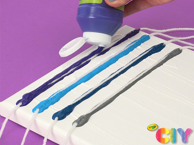 Place string on top of each paint color.