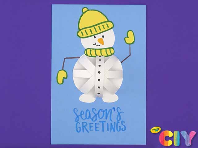 Glue snowman body, hat, scarf, and mittens to cardstock.
