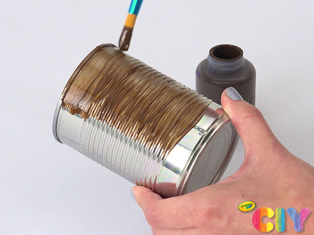 Paint entire can brown. Dry 1–2 hours and add second coat of paint.