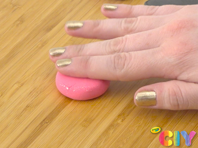 To make a topper, roll a 1” piece of Model Magic into a ball, then gently press down to flatten.