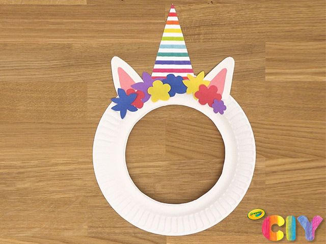 Cut out construction paper flowers and glue to plate as flower crown. Dry all glue steps for 2 hours.