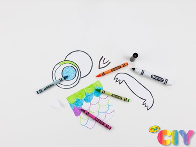 Color all of the cut-out pieces with Crayola Crayons. Use Power Lines Washable Markers with Scents to add details.