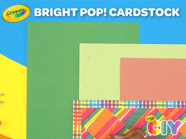 With a pencil, draw an avocado shape onto dark green Crayola Vivid Color Cardstock then draw a smaller avocado shape onto a light green piece of Crayola Construction Paper.