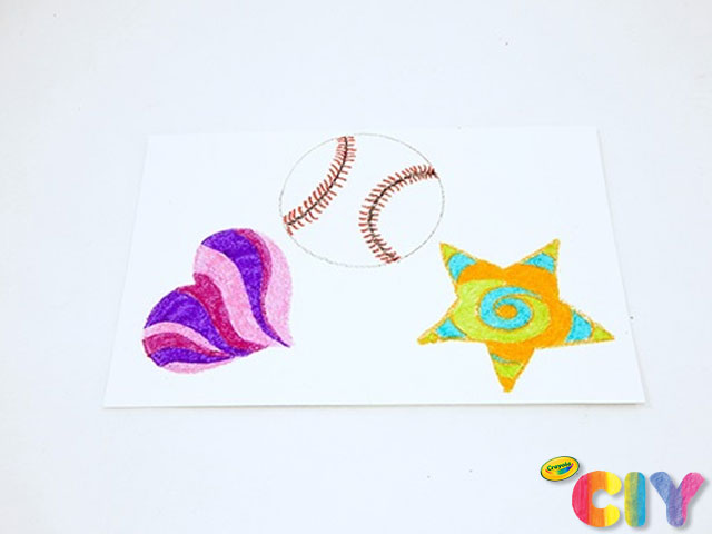 En una hoja de papel grueso, usa los lápices de colores Crayola para dibujar cualquier forma que desees para tu amigo lápiz, como equipos deportivos, criaturas salvajes, símbolos festivos o incluso tu nombre en letras elegantes.