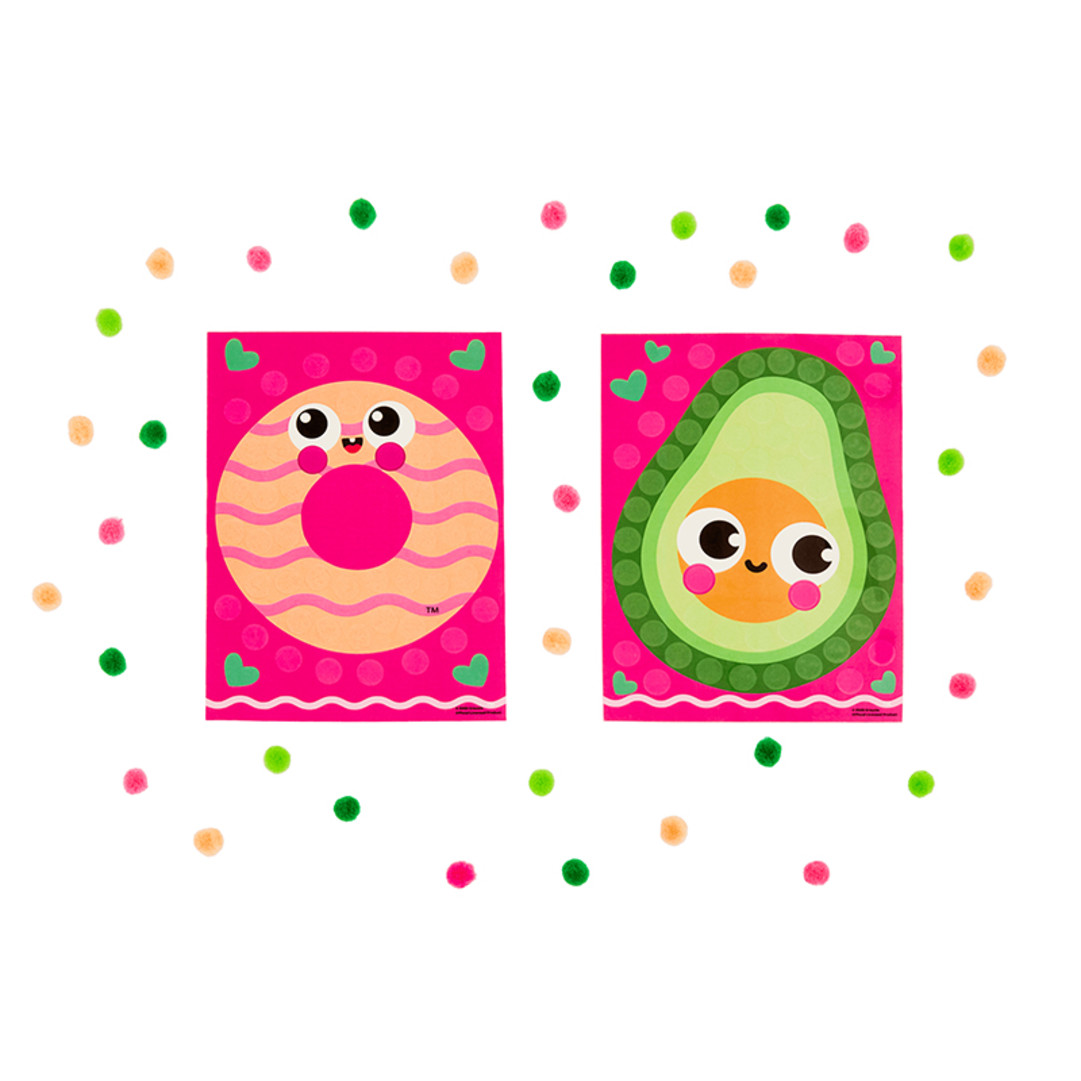 CREA COLORATISSIMI PERSONAGGI CON I POMPOM: Dai vita a una simpatica ciambellina e a un avocado completando le scenette con morbidi mini pompon inclusi in una varietà di colori vivaci.
