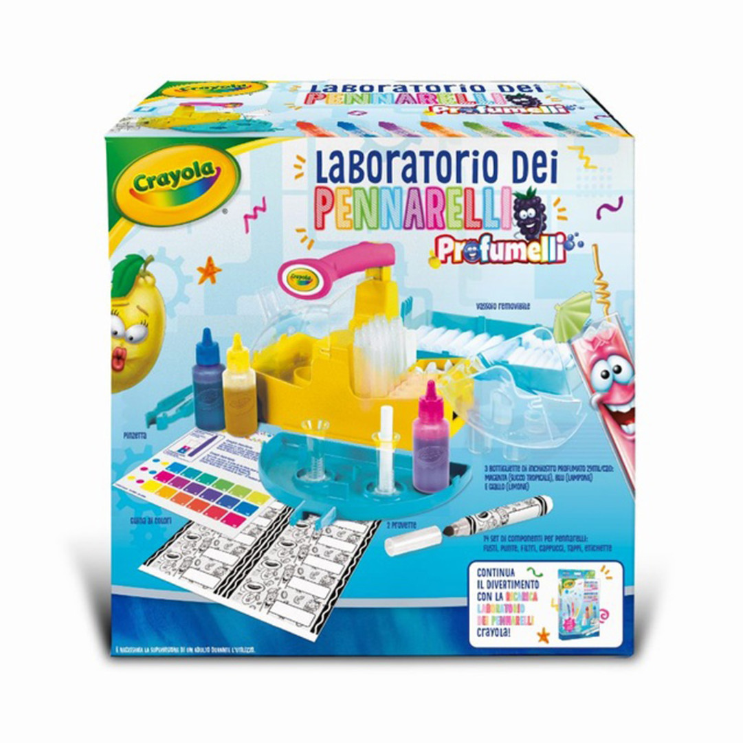 INFORMAZIONI UTILI: unità laboratorio Pennarelli, 3 boccette inchiostro profumato, 14 set per creare i pennarelli, 2 tubi per misurare l'inchiostro, 2 fogli di etichette, 1 pinzetta, 1 guida